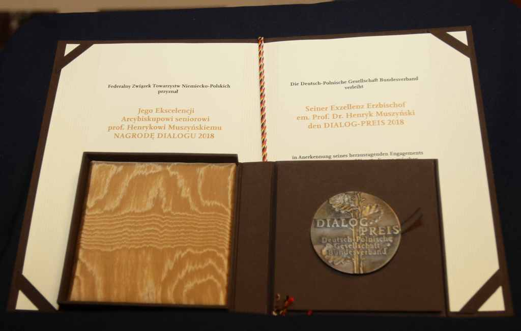 Arcybiskup senior Henryk Muszyński otrzymał w piątek 12 października 2018 roku w Toruniu, niemiecko-polską nagrodę „Dialogu”. To prestiżowe wyróżnienie przyznawane osobistościom i instytucjom świata nauki, polityki, mediów, kościoła, kultury i biznesu.