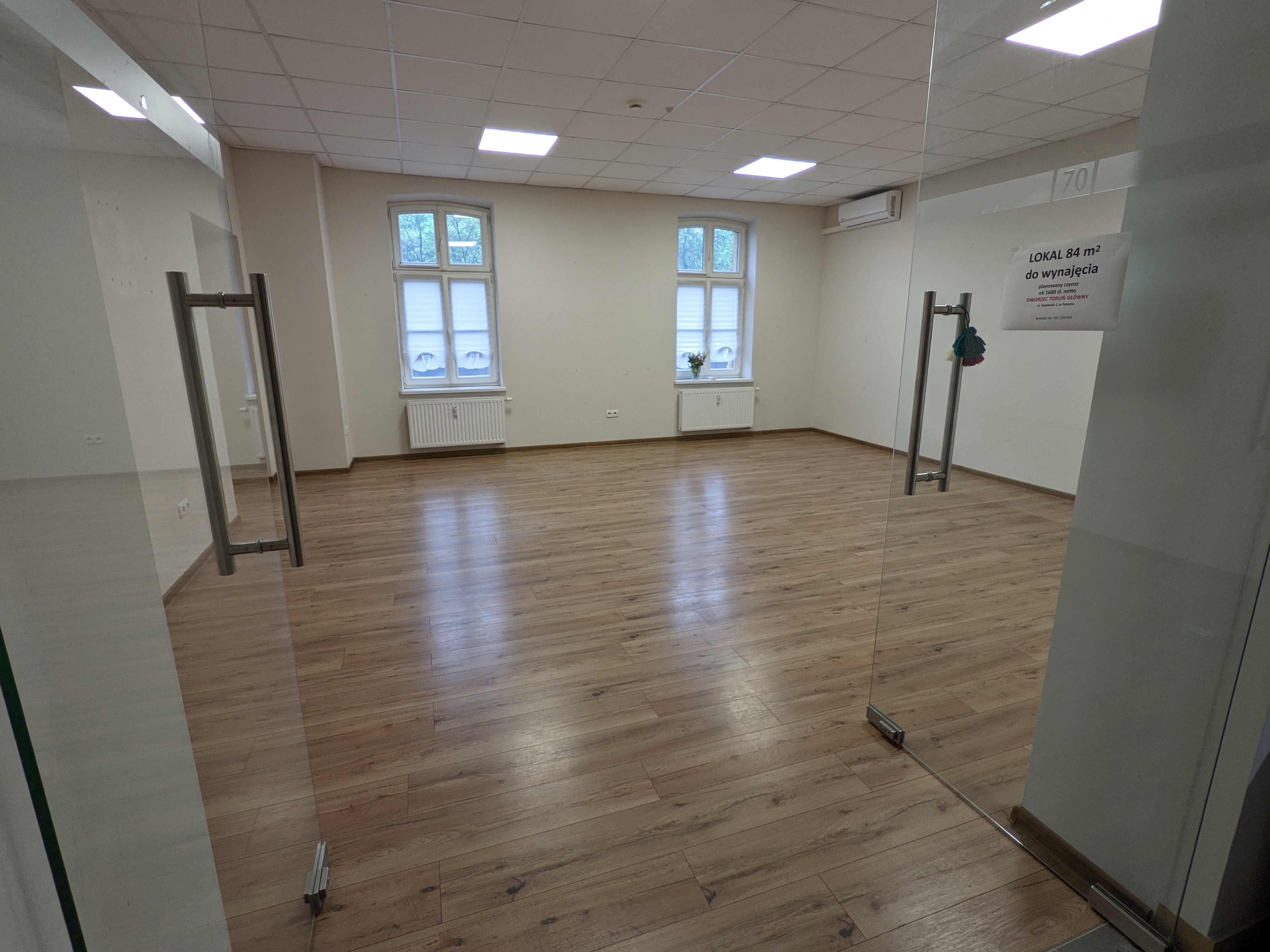- W głównym budynku dworca na I piętrze, dwa połączone pomieszczenia komercyjne o łącznej powierzchni użytkowej 84 m², przeznaczonego na działalność komercyjną, Oferowane lokale są wykończone w stopniu umożliwiającym funkcjonowanie. W lokalu znajduje się klimatyzacja. We wszystkich pomieszczeniach zapewnione jest centralne ogrzewanie gazowe, dostęp do sieci elektrycznej oraz sieci komputerowej przez WiFi lub kabel.
