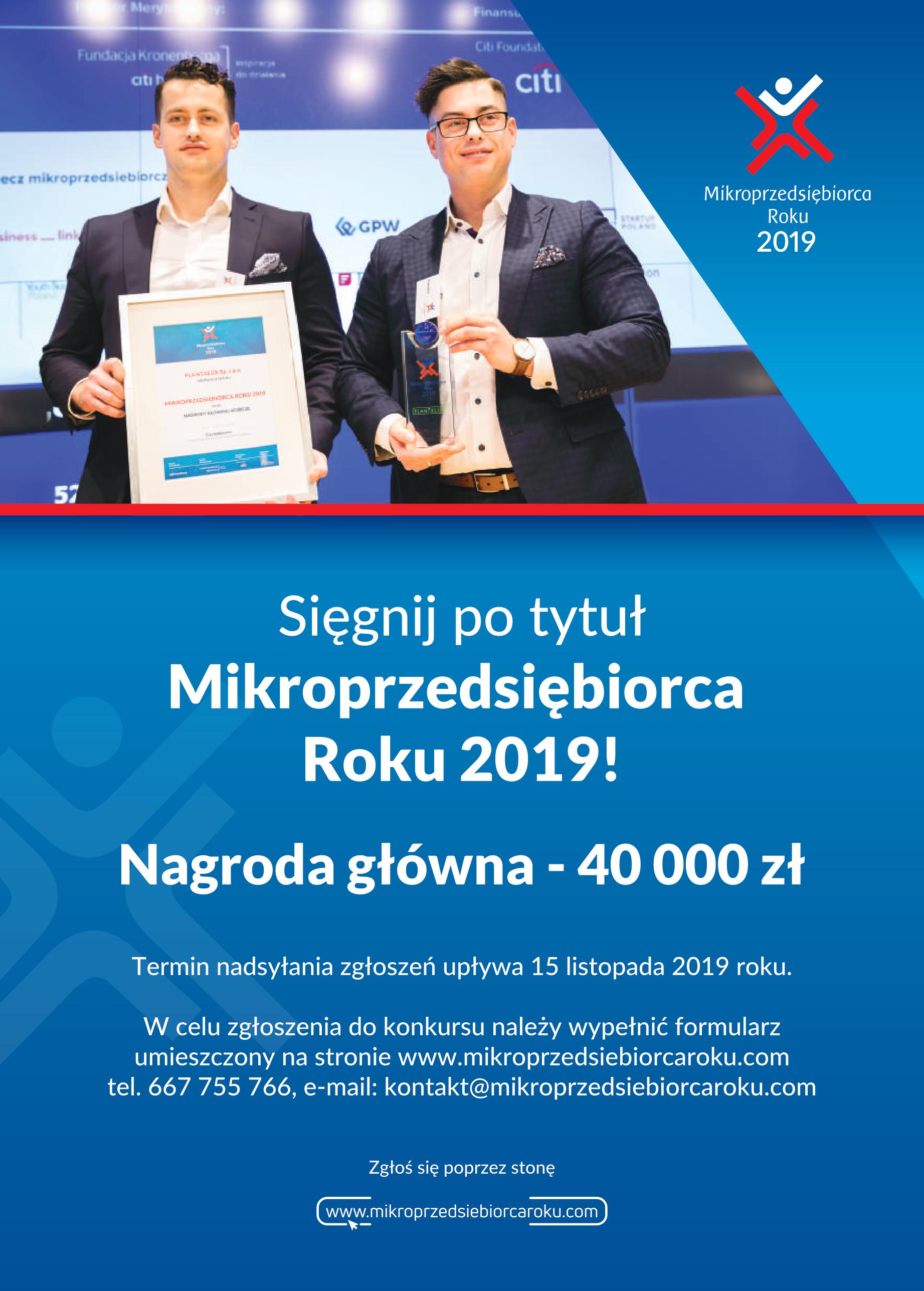 Zgłoszenia do dnia 15 listopada 2019 r. można dokonać poprzez stronę: www.mikroprzedsiebiorcaroku.com