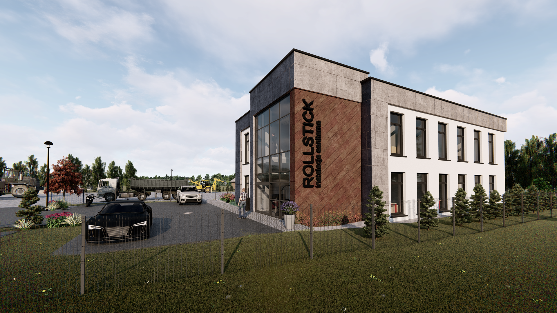 Firma Rollstick przygotowała już wizualizacje swojego obiektu. Będzie to dwukondygnacyjny budynek biurowy o wysokości 8,2m i jednokondygnacyjna hala magazynowa z warsztatem o wysokości 7,25m. Łączna budynków kubatura to 3 500m³, powierzchnia użytkowa biurowca to ok. 500 m², hali magazynowej 250 m². Na firmowej nieruchomości powstanie także część utwardzona, czyli drogi, place parkingi, chodniki, które zajmą ok. 1 900m².